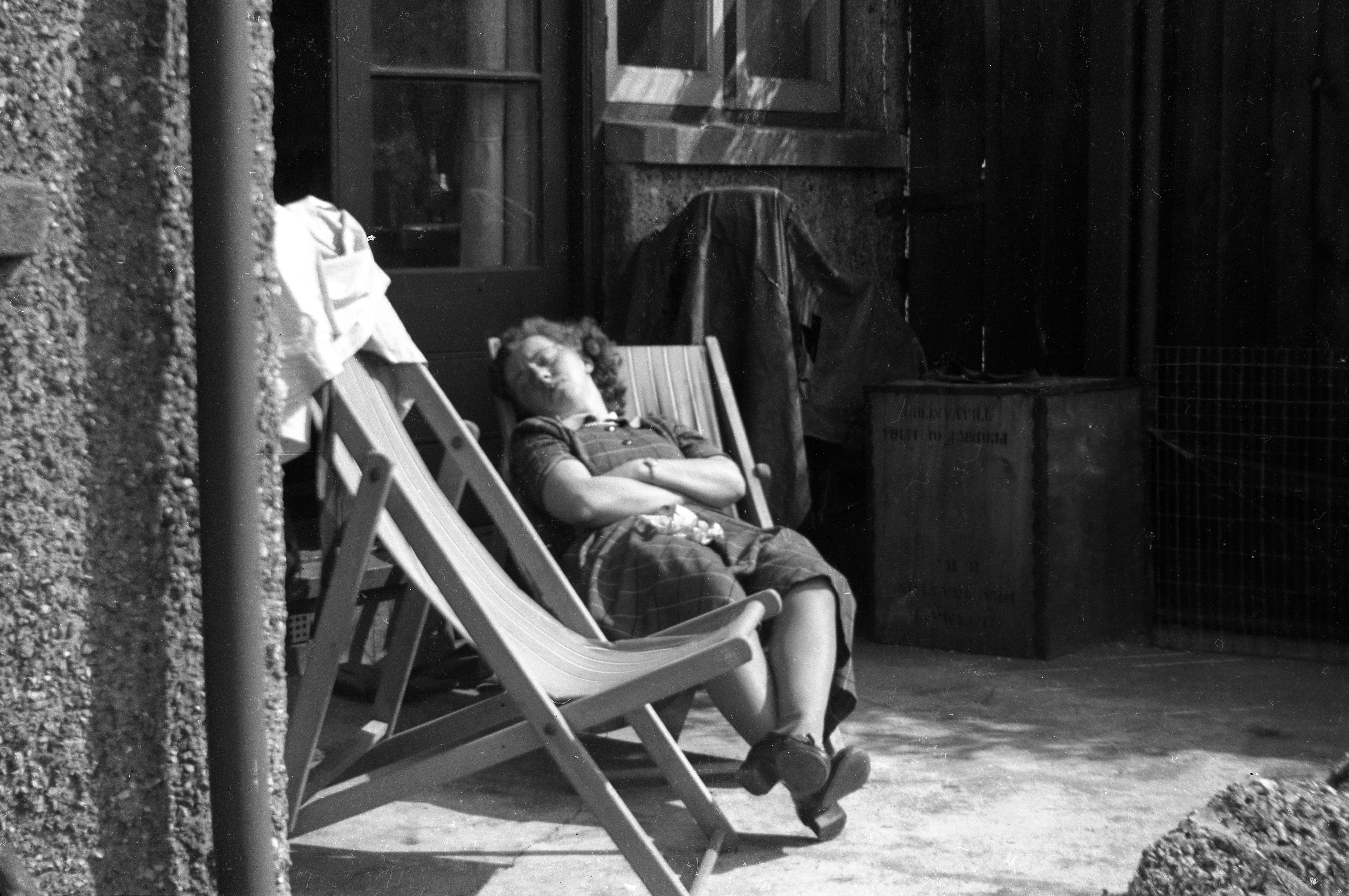 Doris Bishop asleep in the garden