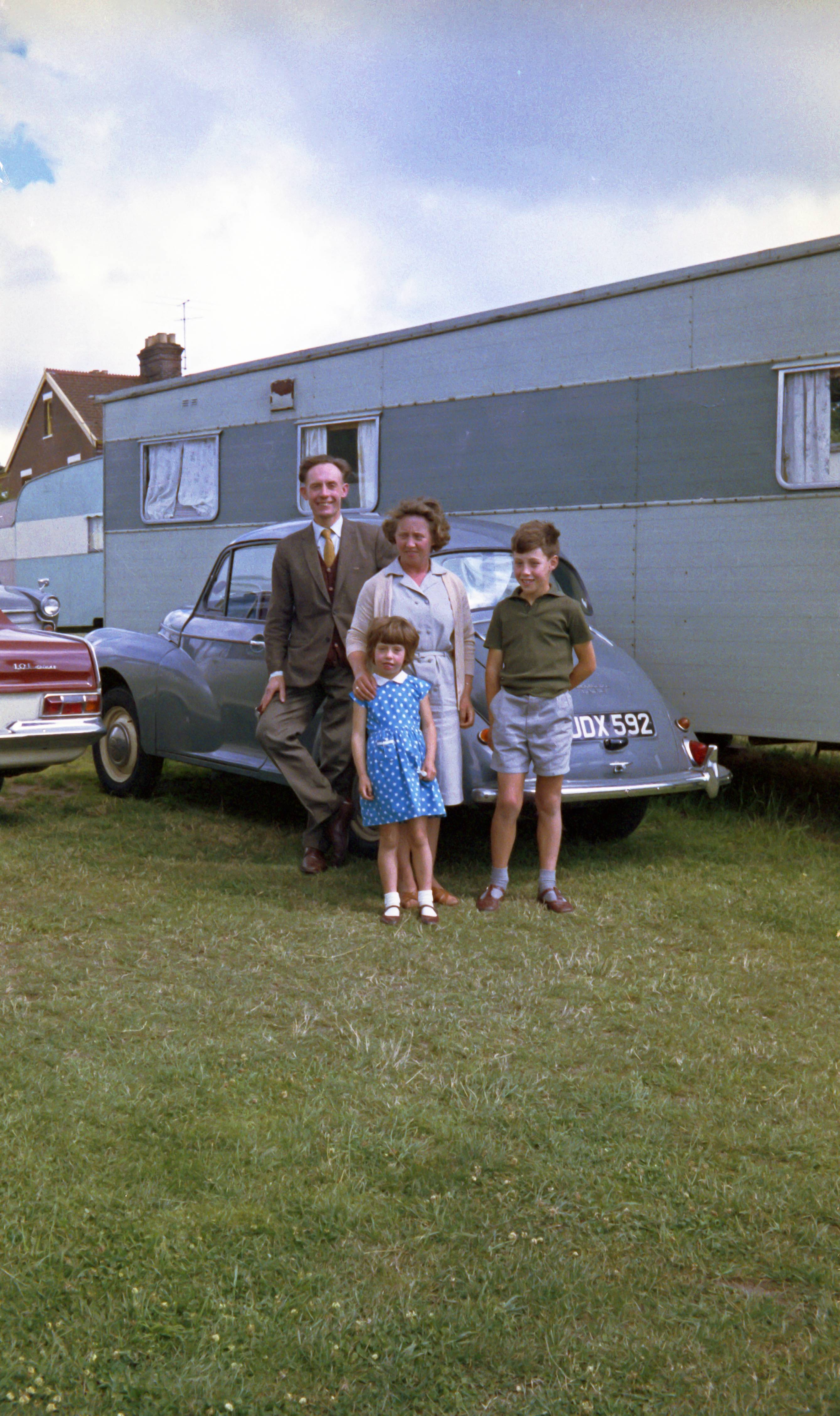Bishop family by the Caswells' caravan, Yarmouth