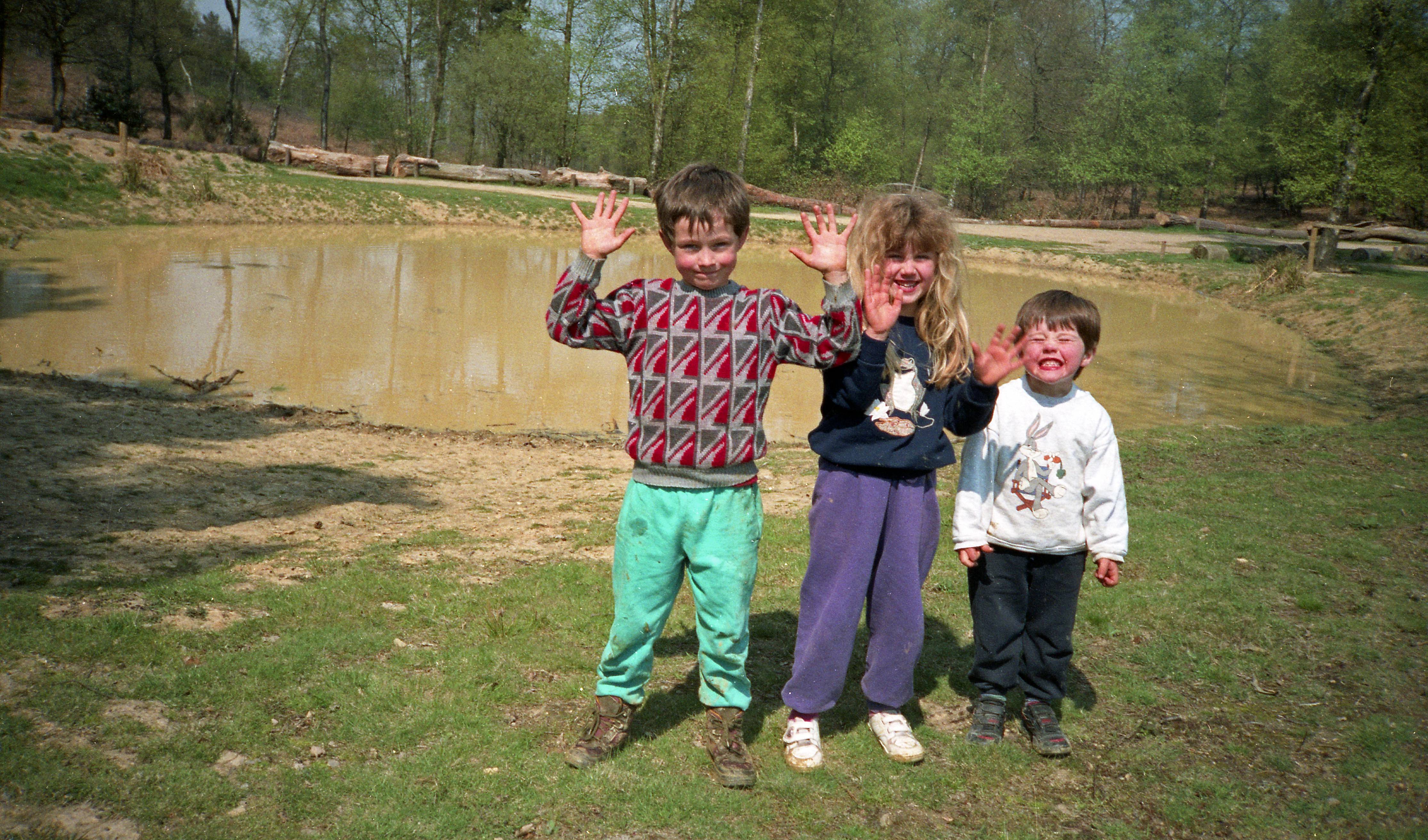 Edward, Joanna and Nicholas by pond