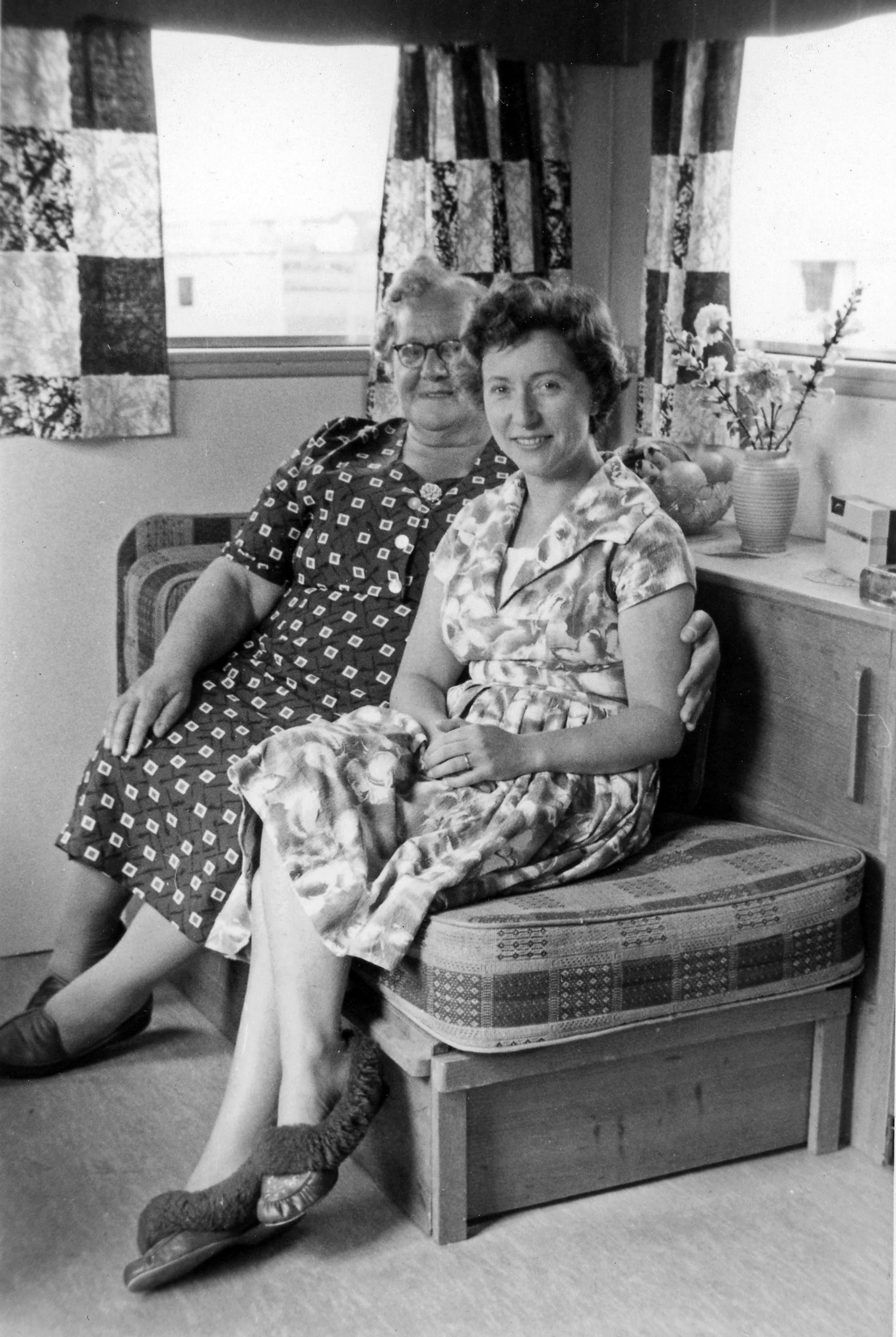 Lillian Porter and Lillian Caswell in caravan, Yarmouth