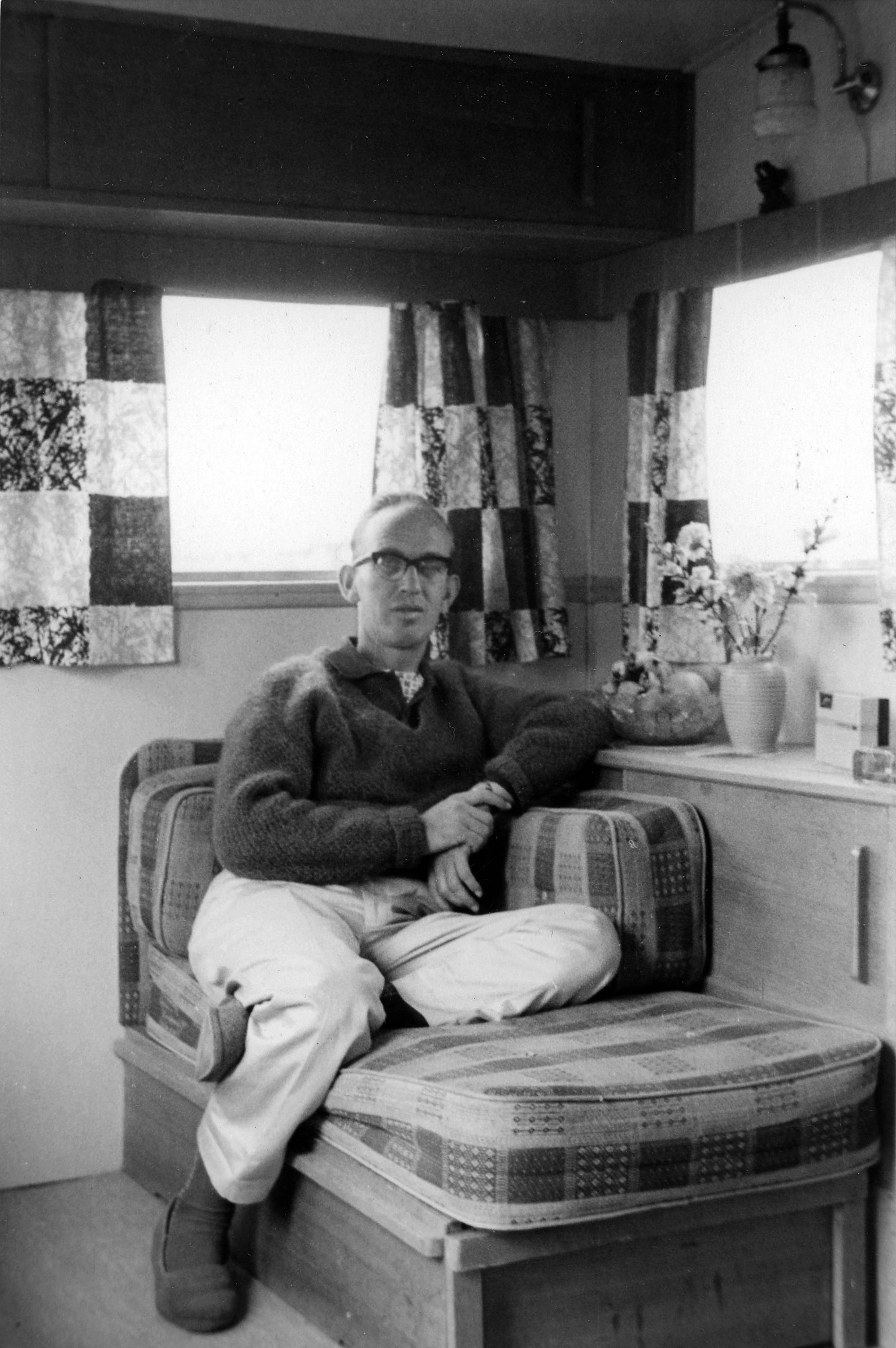 Bernard Caswell in caravan, Yarmouth
