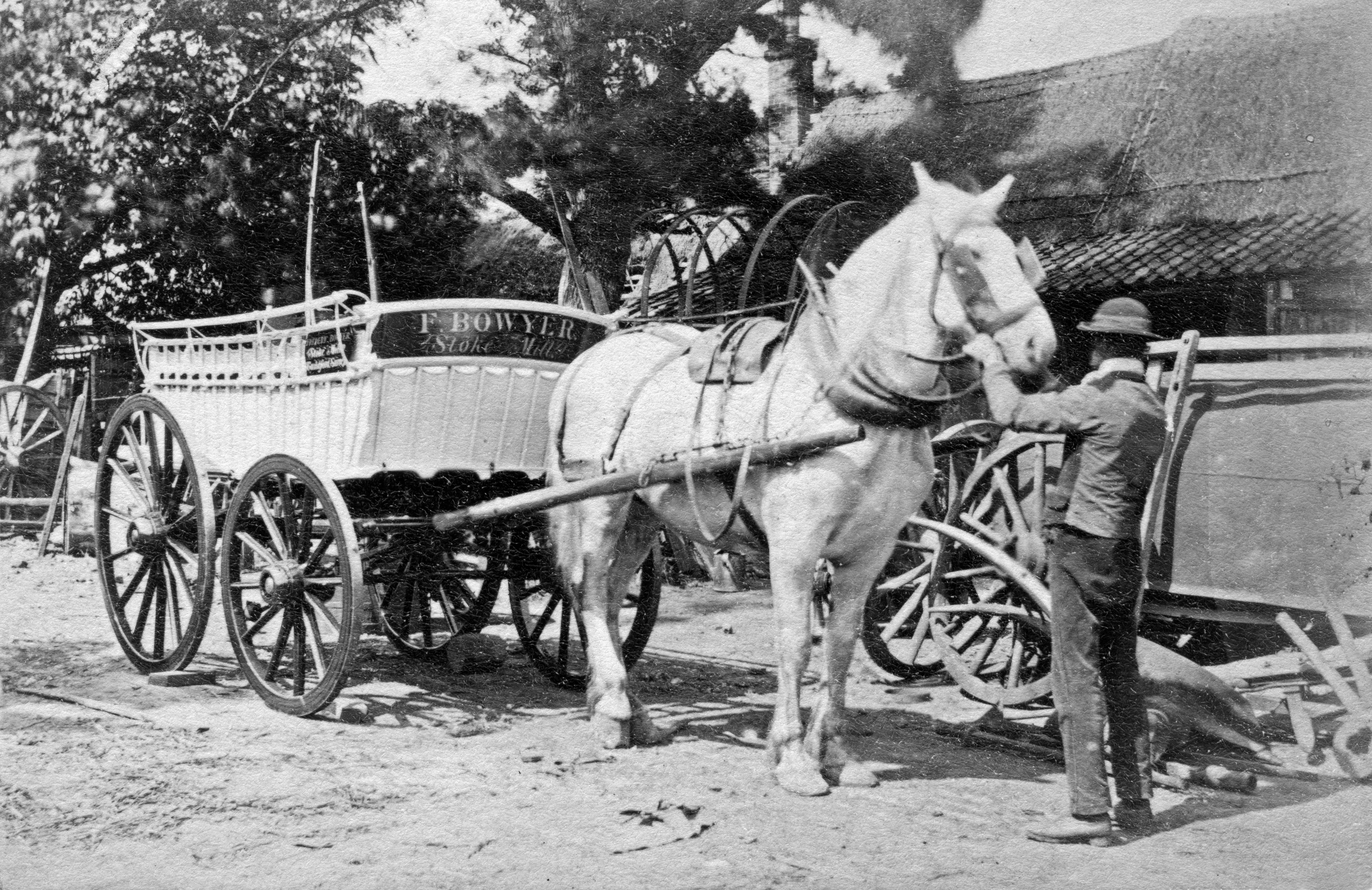 The Bowyer family ran Stoke Mill, near Guildford at that time so presumably the cart is theirs.