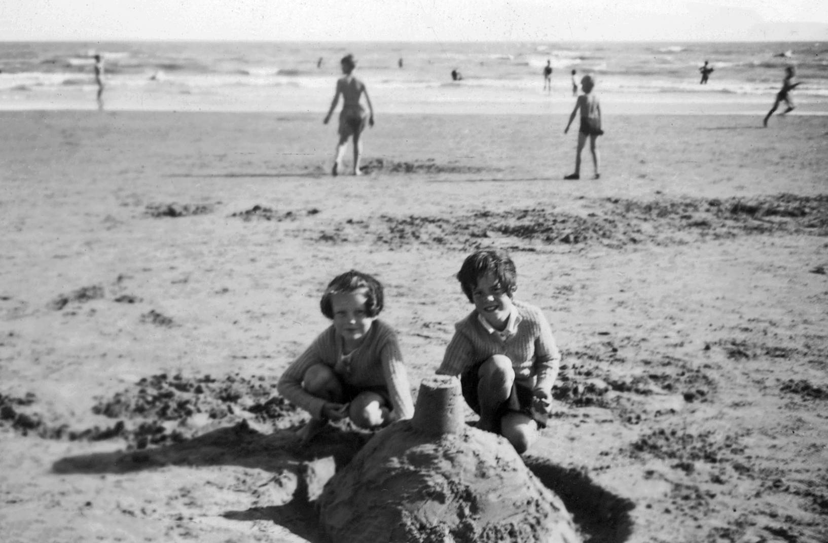 Alison Temple and Anne Carey on beach, Hastings