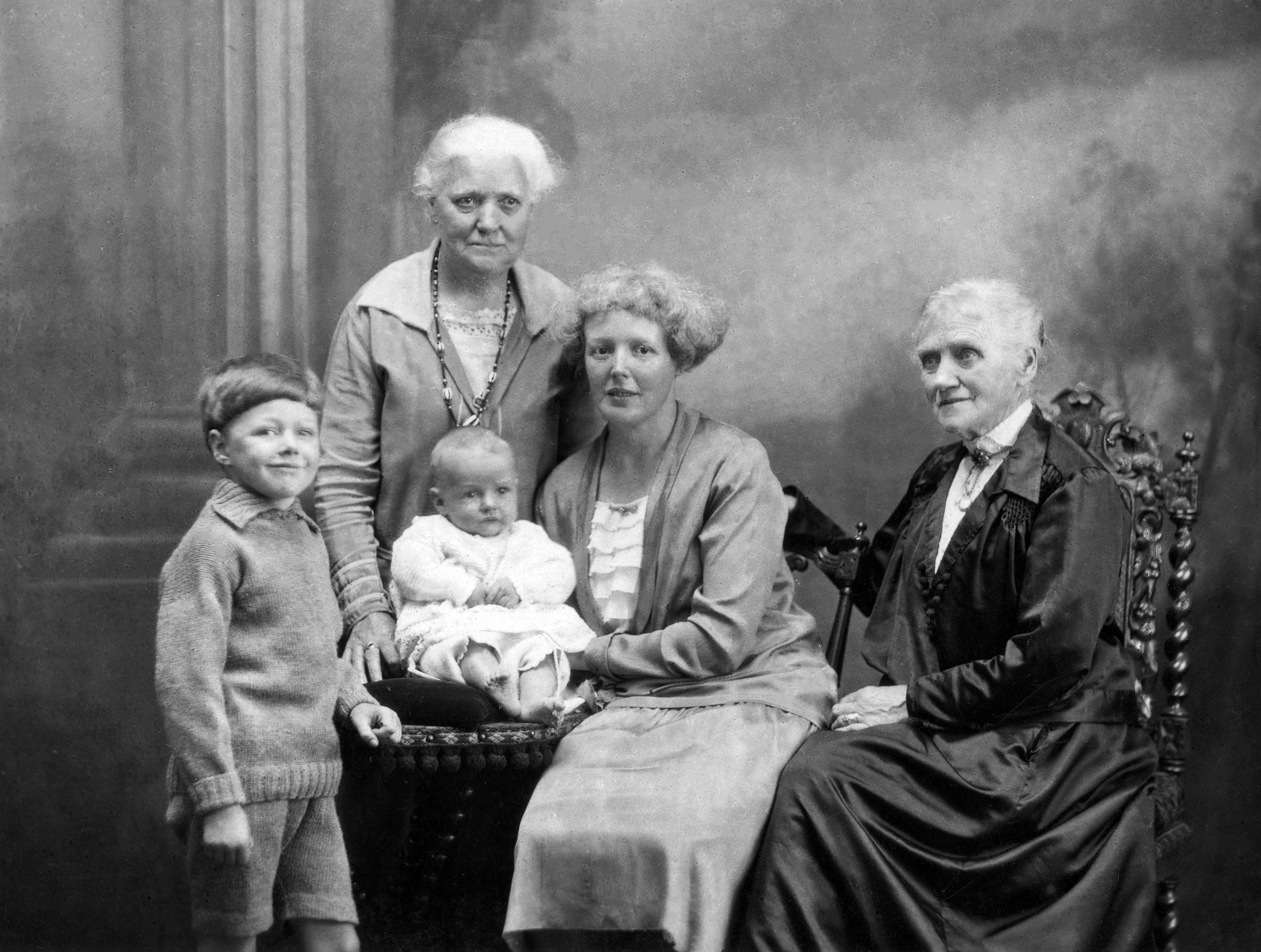 Four generations, from left: Ranger Temple, Mary Louisa Toomer (Ranger's grandmother), Nigel Temple (his brother), Honor May Temple (his mother), Louisa Toomer (his great-grandaunt).